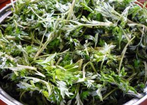 灶上坐一口大一些锅,装上清水点火烧开水后,下清洗好的艾叶,稍微煮一下即可捞出,漏去多余水份,晾凉备用!