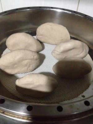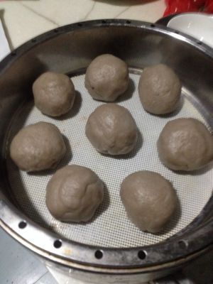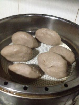 火上坐锅,将面团分成小块,团圆放在笼屉上