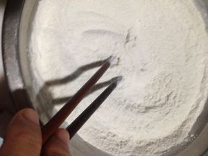 用开水搅拌面粉,搅拌到没有干粉就可以了