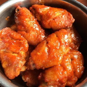 先把烤箱預熱5分鐘,把醃製好的雞翅膀放進烤盤裡,180°C,烤了10分鐘之後可以塗點蜜糖,翻轉一下,一共就烤25分鐘,這樣連骨頭也不會生的