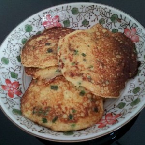 熱平底锅,倒油,油热,改中小火,一勺一个,一锅四个,一碗刚好分两锅。煎得两面金黄,慢慢煎熟。
