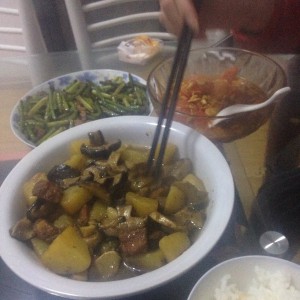 再将腌制好的肉加入,加入少量味精,一勺料酒,一勺红烧酱油,适量盐,焖五分钟左右便可盛出。
