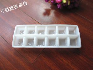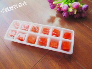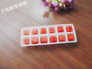 将纯净水倒入模具中,约冰格五分之一的量,放入冰箱