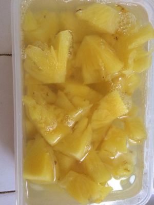 大概小火慢煮15分钟左右,菠萝已得更黄,更透,更软以后,就可以关火了