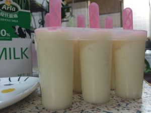 准备材料。牛奶 炼奶。白糖 糯米粉