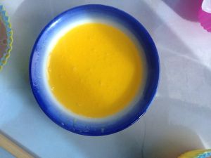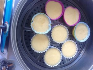 蛋糕液加入磨具中,轻震出气泡,上锅大火蒸15分钟,关火后焖2分钟防止回缩~