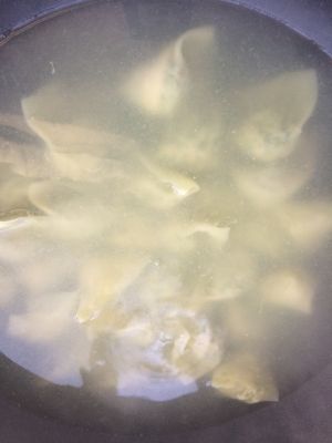 烧水 包好了水基本也来了 水里加点搅一下下馄饨 经常搅一下 防止黏一起 开了以后加点凉水 一共加三次 最后一次开就出锅