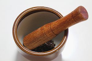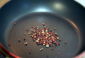 将熟花椒放到捣蒜器中捣成碎面备用。