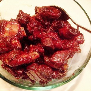 把火再次调至中火煮5-7分钟左右,进行翻炒;然后调至小火收汁。这个收汁的步骤非常关键,时间也很重要,不然做出来的排骨既不晶莹透亮,又不入味儿。这个小火收汁的环境大概要20分钟左右吧^_^