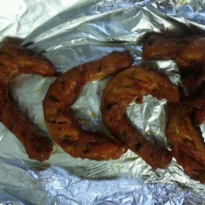 用食用油,蜜蜂涂在鸡翅鸡脖上,微波炉烤翅键烤四十分钟,中途翻个在涂用和密蜂。
