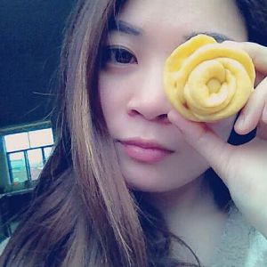 5个小剂子按扁,擀成厚约0.3CM,直径10CM的圆片,圆片的边最好擀的薄点,将5片面片如图叠加;另一个小剂子切的分量稍微少点,搓成橄榄状,用来做花心;