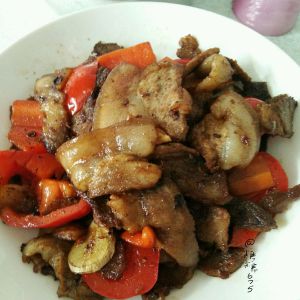 肉切大薄片,洋葱,胡萝卜,柿子椒,姜蒜切片