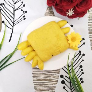 另一份大的面团分成2份,取其中一份,搓成圆柱形,分成4份,其中一份要比另外三份都大,做螃蟹的钳子