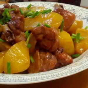 放入葱姜蒜 翻炒至 鸡块上色 倒入适量水没过鸡块,小火慢炖