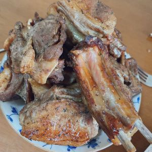 把锡纸放在烤盘上,把羊排和腌渍的调味姜洋葱平铺在上面,汤汁不要了,上面盖一层锡纸,烤箱预热一下,羊排放中层,上下火210度30分钟,拿出倒掉汤汁,去掉上层锡纸再入烤箱中层烤20分钟,然后拿出倒掉汤汁