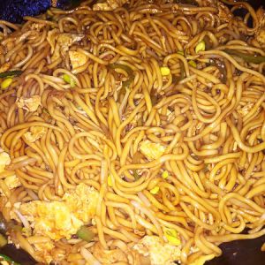加入冷好的炒面,倒入味达美、适量酱油,我这里还加了鲍鱼汁,其实加不加都行,看自己喜欢什么味型