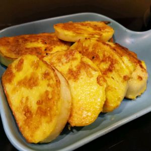 可以在面包片上撒些黑芝麻,这样吃起来会更香。煎至两面金黄即可。