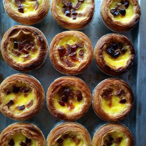 鸡蛋,牛肉,面粉,糖,搅拌均匀。过筛2次,到入蛋挞皮中