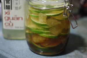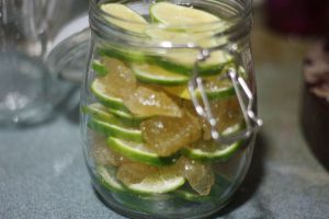 准备材料:把密封罐洗净用热水烫几次,确保清理掉细菌,青柠檬洗净。
