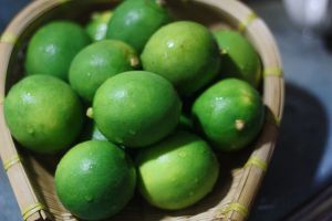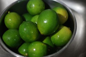 把青柠檬用盐擦净,用冷开水冲洗干净。