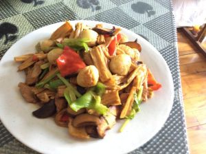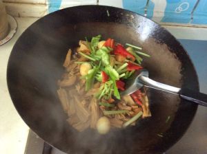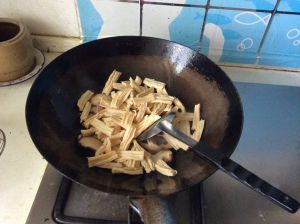 放入腐竹翻炒均匀。