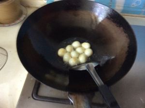锅里放油,将鹌鹑蛋煎一下备用。