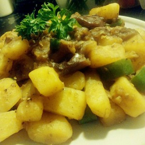 把切好的茄子炒熟后,在锅里放入蒜末炒香,再把茄子跟土豆放进去炒加入切好的青椒一勺糖,一勺鸡精,适量的盐跟生抽一起翻炒3分钟就可以开锅了,