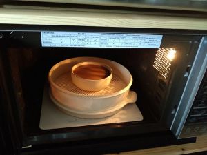 将搅拌好的蛋液放入微波炉蒸屉中,放入微波炉中。