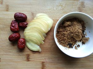 先将生姜、红枣清洗干净,生姜切成姜片备用。