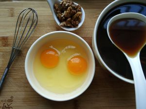 鸡蛋打散,核桃仁切碎或者打成核桃粉,备用。