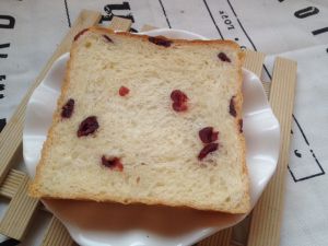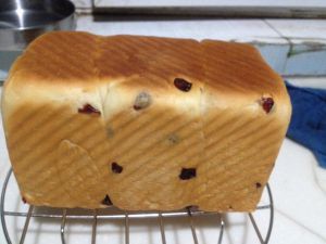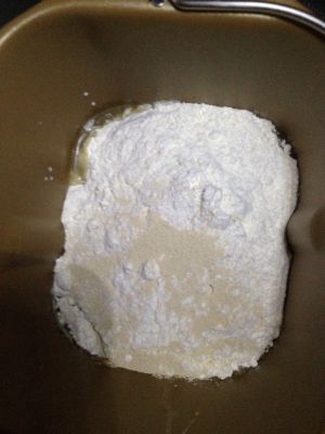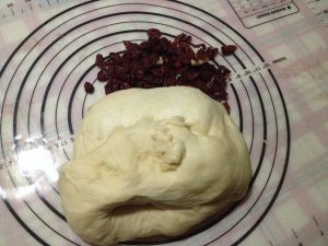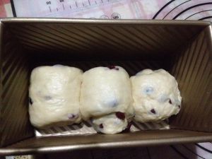把除蔓越莓外所有的材料都放到面包机桶内,开启和面程序,20+30和面,和好面后发酵至两倍大