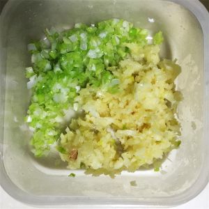 葱姜切沫、蒜压蓉(我接受不了直接吃生姜的味道,所以就用姜粉代替了)。