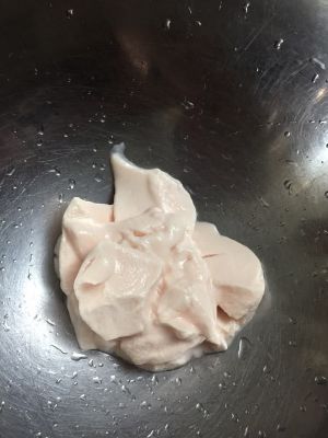 淡奶油打发至7-8分发,与酸奶糊混合均匀