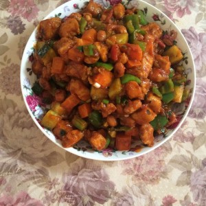 倒入色拉油,将鸡丁倒入,变色即可放入葱姜蒜,西红柿番茄酱等翻炒…再倒入所有胡萝卜丁等…倒入花生…出锅咯