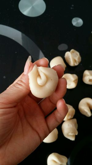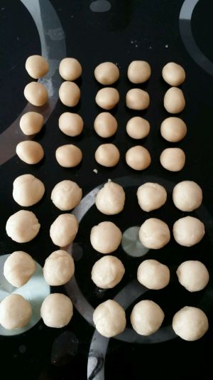 水油皮个酥油皮的材料都揉成面团醒发25分钟,然后各揪20个剂子