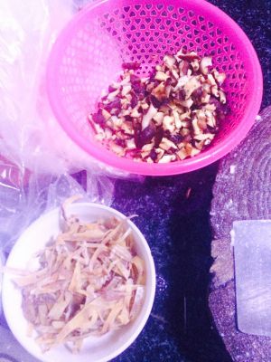 鱿鱼香菇泡好切好。下油锅爆一爆