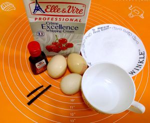 准备原料,将打淡奶油的不锈钢盆放入冷冻室备用