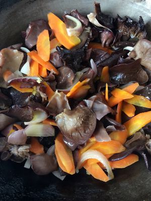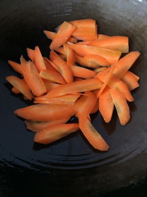 5.先把过萝卜放进油锅翻遍,炒到油变成橘黄色!