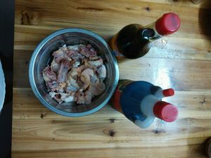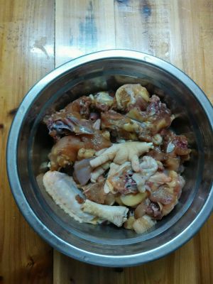 鸡肉炒香,放适量的水焖5分钟,把鸡肉装在碟中。