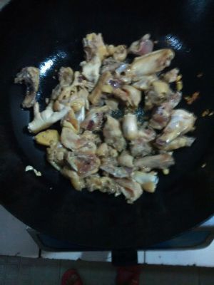 把鸡肉倒下去一起炒一炒,然后装起来。