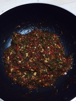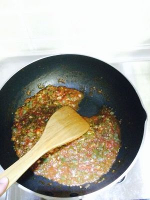 西红柿、辣椒、蒜都切碎。碎的程度自己掌握就好。