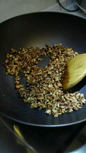 锅中倒少量油,加绵白糖,加适量水,将糖化开,放入红枣,翻炒。糖可以稍多一些,因为其他步骤都不放糖,整个南瓜饼的甜度都在这一步了,比正常吃的甜度多一点点就好,不要太腻。炒好后,放凉。(保证馅料最后是凉的。)