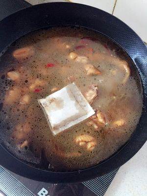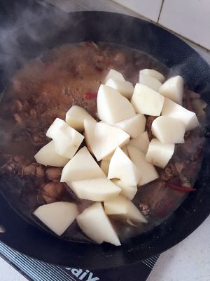 尝尝鸡肉差不多熟了,放入土豆继续炖一会儿