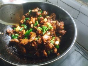 下鸡肉炒,加酱油