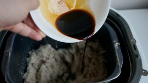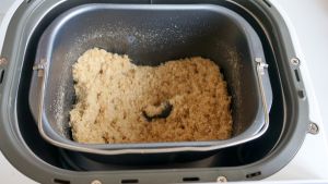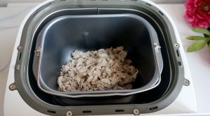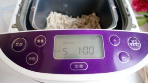 将松散的肉片用手揉搓几下,入面包机内桶