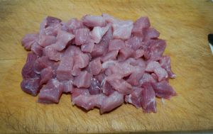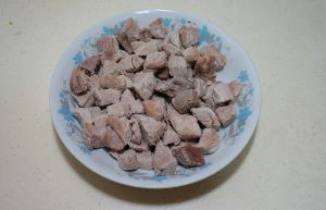 剔除筋膜,切3公分见方的小肉块