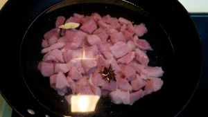 入凉水锅中,与八角、香叶、料酒同煮