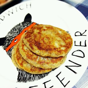 平底锅放少些油,小火(大火就焦了)用勺子把圆球压平成为小饼