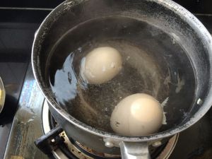 放入锅中把鸡蛋按常规方法煮熟