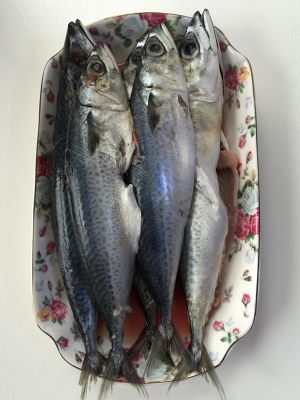 鲅鱼用剪刀剪开之后去除里面的脏东西后清洗干净。